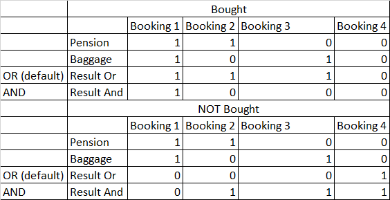 If multiple products are selected in the filters for bought, a booking that has bought all of the products or disc/suppl will receive the e-mail/sms.