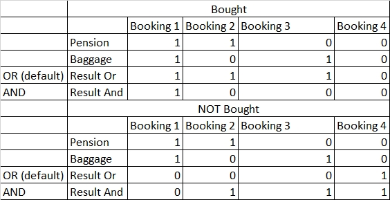 If multiple products are selected in the filters for bought, a booking that has bought at least one of the products or disc/suppl will receive the e-mail/sms.